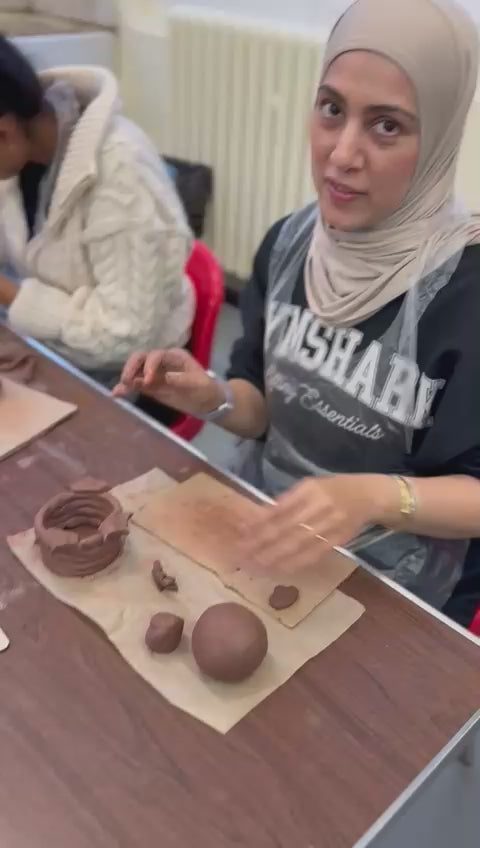 Founded by Haleema (professional ceramicist, 13+ years) and Nayab (wellbeing specialist, 15+ years mentoring professionals), Mittika brings therapeutic clay experiences to organisations across the UK.